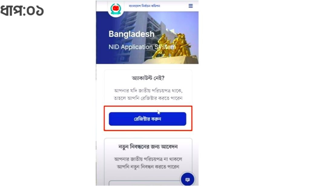 ওয়েবসাইটে গেলে উপরের দিকে “রেজিস্টার করুন” বাটনটি পাবেন। সেটিতে ক্লিক করুন।