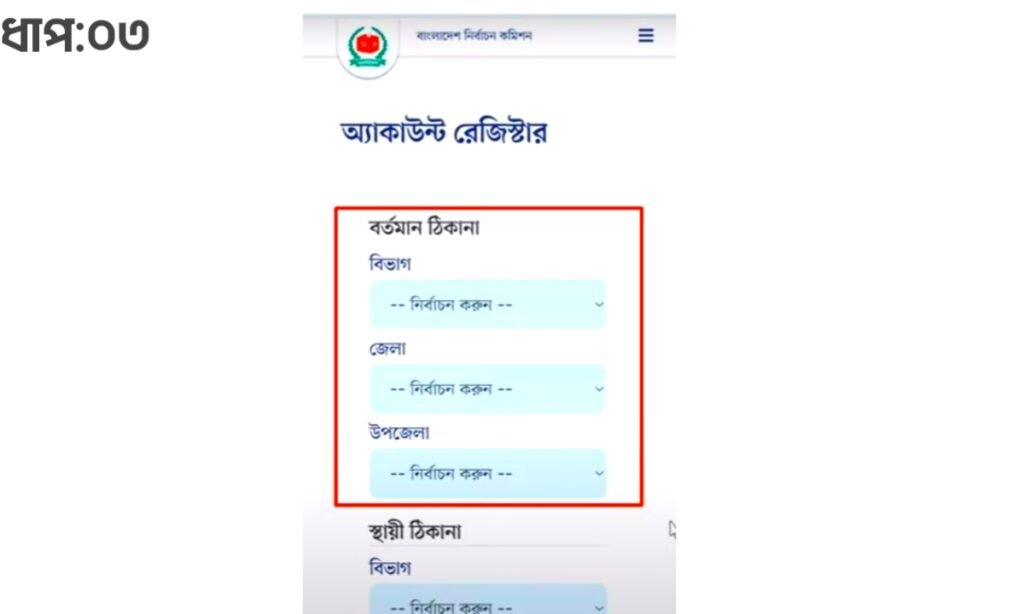 এবার আপনাকে আপনার বর্তমান ঠিকানা এবং স্থায়ী ঠিকানা যাচাই করতে হবে।