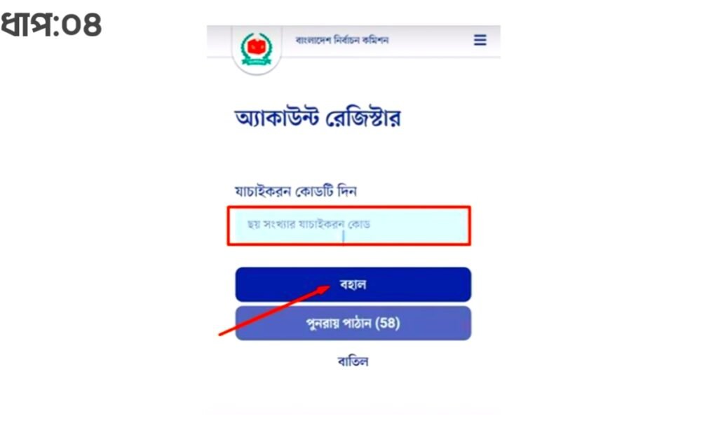 এই ধাপটি সবচেয়ে গুরুত্বপূর্ণ, কারণ এখানেই আপনি আপনার এনআইডি একাউন্টের মালিকানা নিশ্চিত করেন।