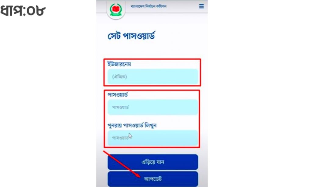• দুইবার একই পাসওয়ার্ড লিখে “আপডেট করুন” বাটনে ক্লিক করুন।